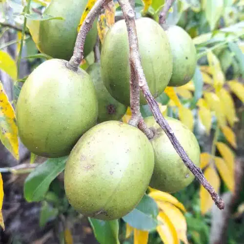La sapote noire est un fruit ovale de couleur brune et au goût chocolaté, surnommé « caca poule » en raison de sa couleur.